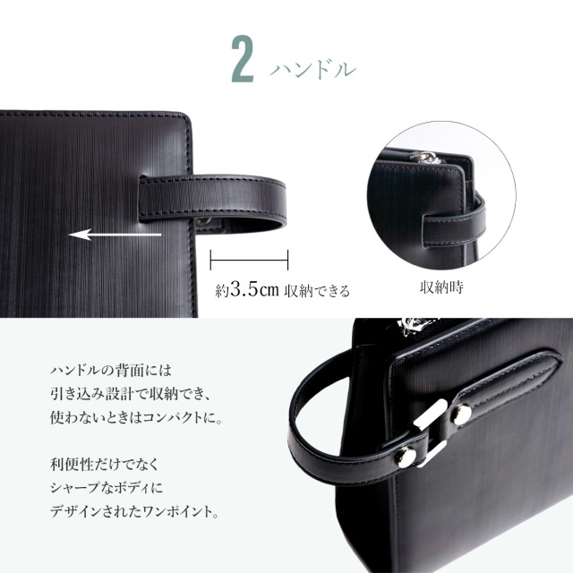 [ブランド]Dom Teporna:ドンテポーナ [スペック] ・メイン収納 × 1 ・ファスナー付きフリーポケット × 1 ・スマートフォンホルダー × 1 ・カードポケット × 1 ・ペンホルダー × 1 ・キーホルダー × 1 " 職人の技で極まるディティール " 当社独自の製法で、繊細なストライプ加工を施したバイナルレザー。 バイナルとはレコード盤を意味し、盤面のような輝きを放つ美しいレザー。 シンプルかつスタイリッシュで、あらゆる場面でオーナーを引き立てる。 セカンドバッグならではの携帯性でスマートさも際立つ。 ビジネス/プライベート、耐久性や機能性が使いやすさを演出。 シーンを問わない美しいデザインがプレミア感を演出する。 内装は収納が充実。 細かい持ち物の専用ポケットやホルダーが機能的。 必要なものを分かりやすく整頓してコンパクトに持ち運ぶ。 厳選された本革を使用。 選りすぐりのパーツを使用し、品質管理の行き届いた弊社提携の 一級技術を持つ工場による丁寧な仕上げは一つの製品を芸術に仕立て上げる。 素材、仕上げはもちろんのこと デザイン。 サイズ感。 機能性。 どれを取っても、本物を求める者にとって完璧なバッグです。 ※ご利用のモニター、ディスプレイにより若干色味に差がある場合がございます。ご了承ください。 ※商品の生産時における装飾等は海外にて手作業で行っており、多少の差異がある場合がございます。ご了承くださいませ。