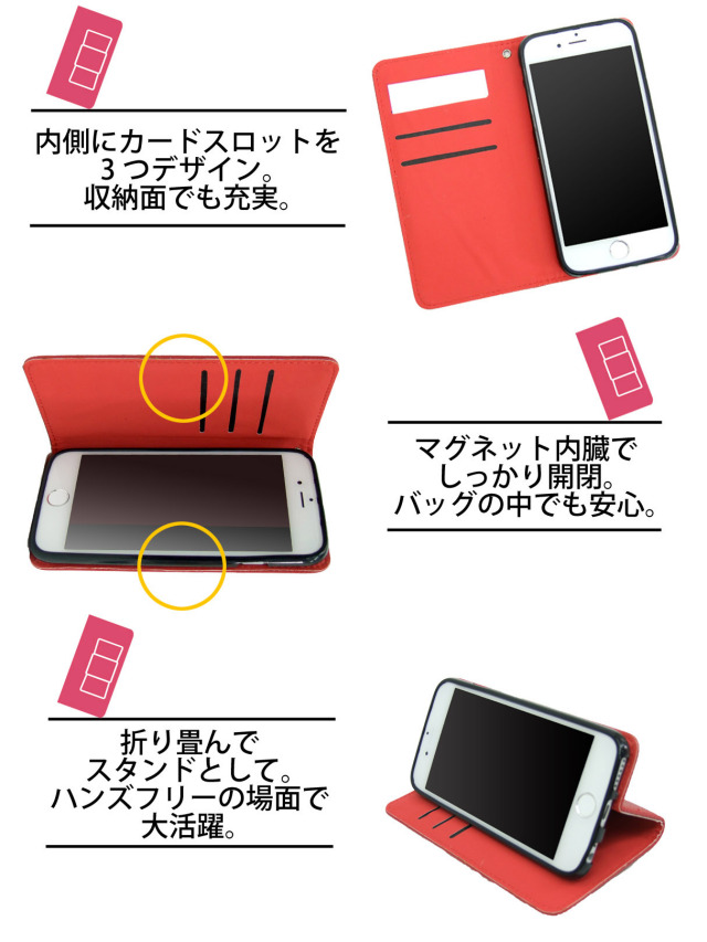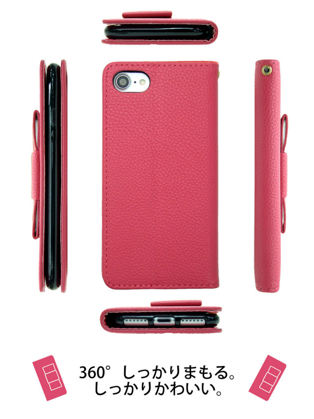 ◆手帳型iPhoneケース◆トゴ型押加工のPUレザー製手帳型ケースです。本革に迫るサフィアーノ型押加工で上質な質感ながらPUレザーならではの手入れ不要、水気、汚れへの耐久性を備えています。シンプルなフォームにインパクトのあるリボンモチーフがアクセント。ブラックとホワイトはボディカラーとツートンとなってます。開閉はマグネット式で程よく固定。カードケース3つ、ストラップホール付きで実用面でもバッチリです。全7色PUレザーとは、「ポリウレタンレザー」の略称になります。素材としては、柔らかくしなやかで、肌の様な風合いがあり、より本革(天然皮革)に近い質感があります。疑似本革として、最高級にあたります。弾力性、柔軟性が高く、スマートフォンケースに適している素材です。通気性があり、撥水性も高いのでメンテナンスが非常に簡単です。お手入れについて(PUレザーは水分に弱いのでお手入れの基本は乾拭きでお願い致します。)※ご利用のモニター、ディスプレイにより若干色味に差がある場合がございます。ご了承ください。※商品の生産時における装飾等は手作業で行っており、多少の差異がある場合がございます。ご了承ください。