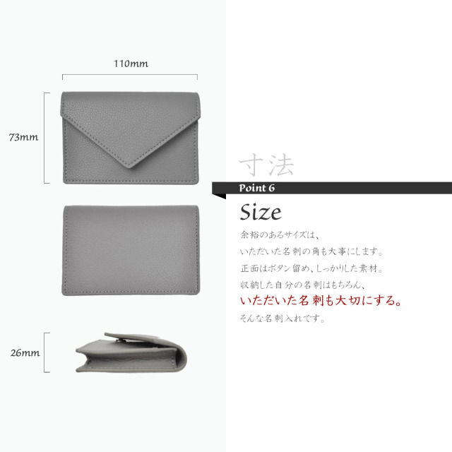 ” 大人おしゃれ 名刺入れ ” 牛革 トゴレザー仕上げ シンプルでいてどこかエレガントなそのデザイン性 「きっちりと仕事をこなす。」 そんな印象を名刺交換の時に抱かせてくれる 薄型でいて収納力も抜群 標準的な厚さの名刺であれば50枚以上収納 素材や縫製にもこだわり 自社管理の工場で熟練の職人がひとつひとつ丁寧に仕上げ ※ご利用のモニター、ディスプレイにより若干色味に差がある場合がございます。ご了承ください。 ※商品の生産時における装飾等は海外にて手作業で行っており、多少の差異がある場合がございます。ご了承くださいませ。