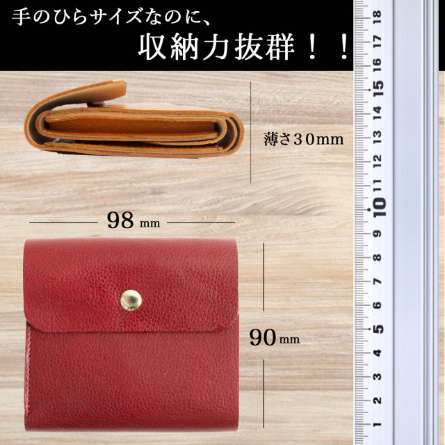 ブランド:RafiCaro 全面にイタリアンレザーを贅沢に使用 大人の贅沢ミニウォレット "晴れやかに出かける フラップミニ財布" お札も小銭もカードもたっぷり収納 なのに厚さ3cmで薄い 手のひらサイズのコンパクト感 充実の収納力でいつもラクラクおでかけ気分。 薄くて柔らかいイタリアンレザーを使用しているので、届いて初めて使う瞬間から馴染んで使い易い。 永く使用しているとエイジングが進み愛着もわいてきます。 [スペック] ・お札入れ × 1 ・カードポケット × 2 ・フリーポケット × 2 ・小銭入れ × 1 [推奨最大収納] ・お札 × 15-20枚 ・小銭 × 30枚前後 ・カード × 2-5枚