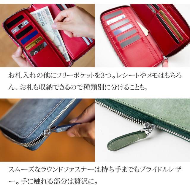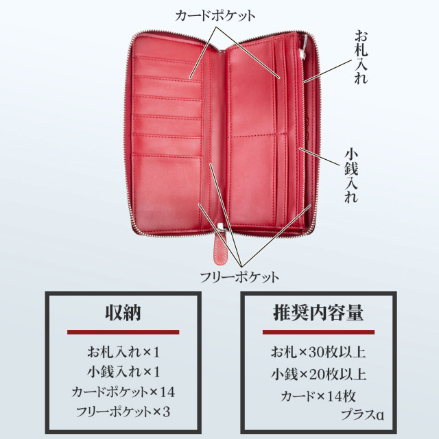 [スペック] ・お札入れ × 1 ・ 小銭入れ × 1 ・カードポケット × 14枚+α ・フリーポケット × 3スペース [推奨収納] ・お札 × 30-50枚程度 ・ 小銭 × 20-30枚程度 ・カード × 14枚+α " 個性で遊ぶ大人 " ブライドルレザー 長財布 ビジネスシーンでも 普段使いでも 特別な素材で差をつける 一級工場の一級仕上げ 選りすぐりのパーツを使用し、品質管理の行き届いた弊社提携の一級技術を持つ工場による丁寧な仕上げは一つの製品を芸術に仕立て上げる 素材、仕上げはもちろんのコト デザイン サイズ バランス感 機能性 どれを取っても、本物を求める者にとって完璧な財布です
